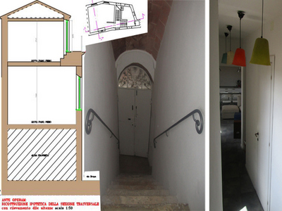 Il progetto ha ricucito un edificio cielo-terra, d'impianto prevalente quattrocentesco, frammentato da successioni ereditarie, costituito da una piccola bottega a piano stradale, un'ampia cucina al primo piano, una stanza di passaggio al piano intermedio e una scomoda zona letto al piano attico, valorizzato da un lungo terrazzo con affaccio sulla piazza principale ma deturpato dai tamponamenti di molte finestre. L'intervento è stato quello di ribaltare la concezione degli spazi e vivere l'impianto separatamente a ogni piano, creando unità abitative autonome, lavorando sulla luce e riaprendo le finestre tamponate in modo da amplificare gli scorci visivi e godere della posizione privilegiata dell'immobile